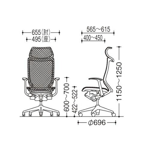 サイズ:幅655×奥行696×高さ1150〜1250(座面高422〜522)mm 材 質 背フレーム/アルミダイキャスト 肘パッド/熱可塑性ポリウレタン デザインアーム/アルミダイキャスト 脚/アルミダイキャスト キャスター/直径60mmナイロン双輪キャスター 規格・性能・加工 グリーン購入法適合商品 社団法人日本オフィス家具協会(JOIFA)が認めた、地球環境に非常に優しい商品です。