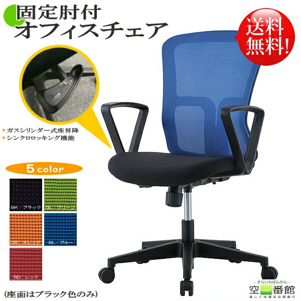【送料無料】 通気性に優れた メッシュチェア 固定肘付 オフィスチェア ブラック/グリーン/オレンジ/ブルー/レッド ミドルバック W490×D600×H880〜970 GD-522-2 オフィス家具 【smtb-k】