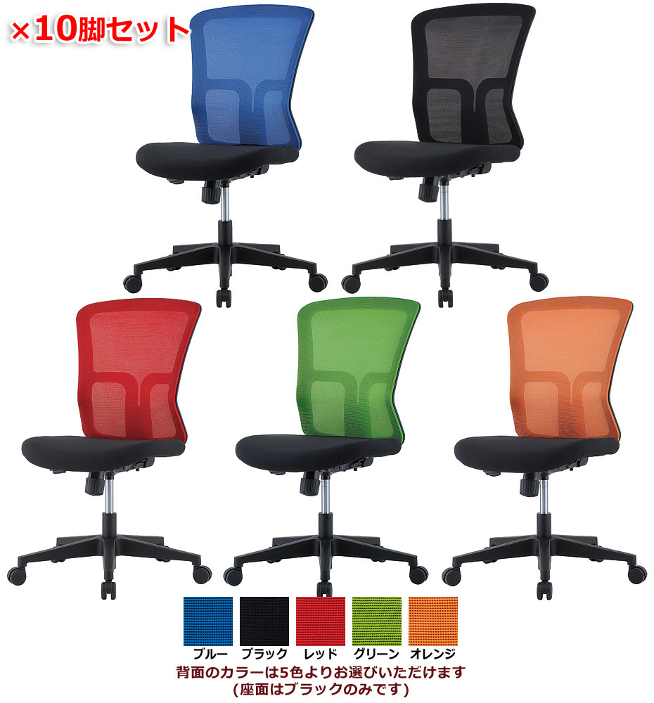 送料無料 新品 「メッシュチェア 10脚セット」 パソコンチェア 事務チェア ワークチェア キャスターチェア 5色あり