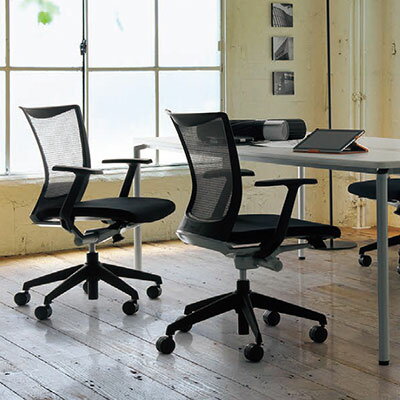 ブリーザ ブラックリミテッド 背座メッシュタイプ 肘付き No.1856F 商品について サイズ幅620×奥行560×高さ870〜960mm座面高さ420〜510mmキャスター直径60mm 重量約13.5kg 材質背、座面=PA樹脂成型品(弾性ポリエステルメッシュ一体成型)背座フレーム、肘、脚部=PA樹脂成型品肘パッド=PPエラストマー樹脂機構部=アルミ・粉体塗装キャスター=ナイロン双輪 備考フリーシンクロロッキング、ロッキング強弱調節可能、フロントストッパー付、グリーン購入法適合商品 生産国日本 備考肘付きのタイプになります。